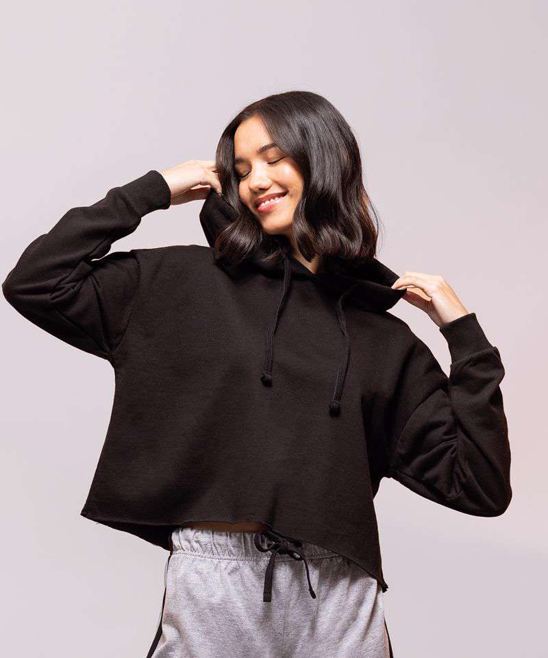 Keep it cool in this cropped slounge hoody, with its relaxed oversized shape and tear-out label for easy-rebranding.