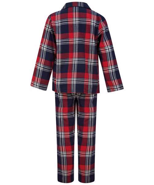 Woven tartan lounge set with plain hem. Shirt with a pyjama collar and pearlised button front, and bottoms with a full elasticated waist. Tear-out label.