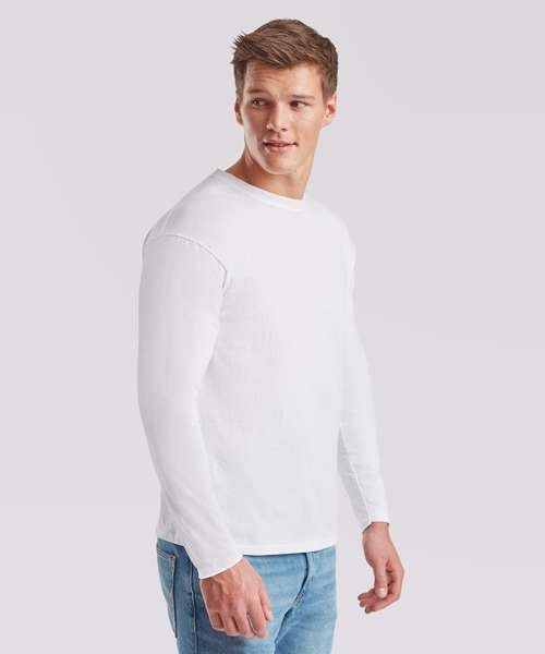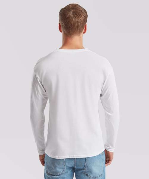 Rib crew neck with self-fabric back neck tape. Fine knit gauge for enhanced printability.