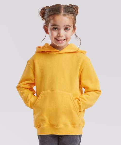 Made with a double fabric hood without drawcord – in-line with European childrenswear legislation – the kids classic hooded sweat is available in a wide range of colours and is perfect for sports, tourism, events and more. Details include a front kangaroo pocket and cotton/Lycra® waist and cuff ribs for added comfort.