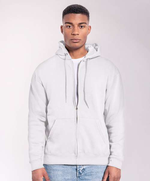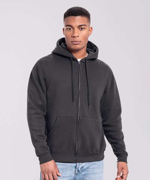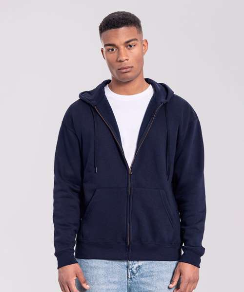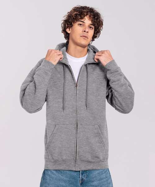 Classic fit. Single Jersey hood lining. Self-coloured flat drawcord. Covered metal zip for enhanced printability. Two front pockets. Tear-away label. Soft 100% combed ringspun cotton face for best decoration results. Brushed inner fleece. 1x1 rib at cuffs and hem with Lycra for superior comfort. Made with CiCLO® fibres.