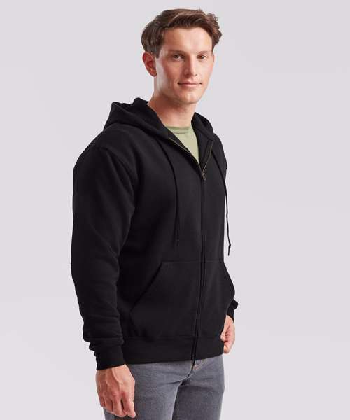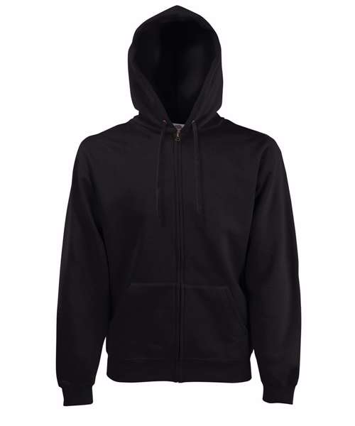 Ideal for work, tourism, event, leisure or casualwear, the Premium hooded sweat jacket is available in a range of colours and features a double fabric hood and covered metal zip for enhanced printability. Details include a self-coloured flat drawcord and two front pockets, while a single Jersey back neck tape and cotton/elastane waist and rib cuffs provide easy movement and everyday comfort.