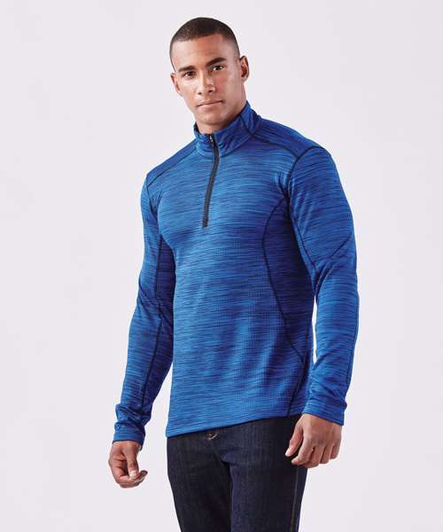 STORMTECH H2X-DRY® moisture management. Snag resistant fabric. Contour side panels. Reverse coil front ¼ zipper Contrast cover stitching. Drop needle double-knit fleece wicking and thermal.