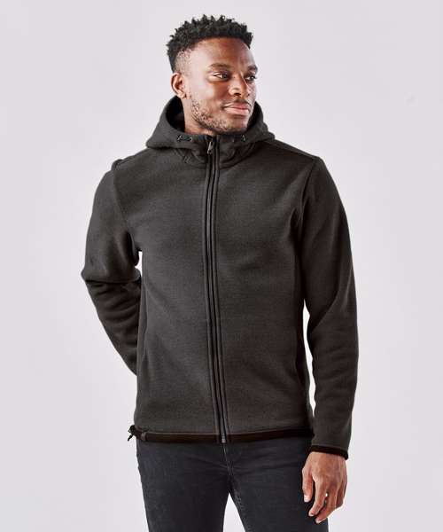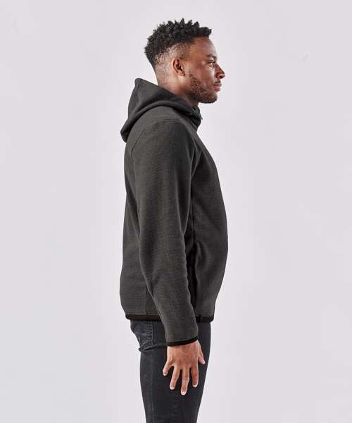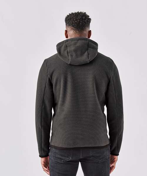 Pure Earth by STORMTECH™. Ultra-soft, ottoman-knit fleece shell. Full-coverage, easy-lock, adjustable, three-piece hood. On-seam zipped handwarmer pockets. Contoured side panels. Brushed tricot hood facing. Cuffs and hem. Adjustable hem. Low-profile chin saver.