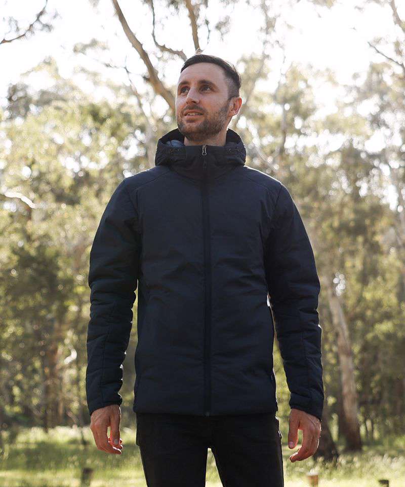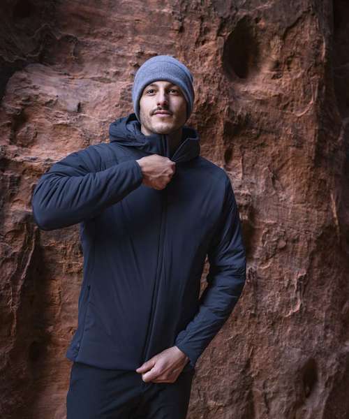 Stormtech Thermal Shell™ insulation. Durable water-repellent finish. High-performance stretch woven outer shell. Full-coverage attached hood with easy-lock adjustment. High-density brushed-back knit panels. Articulated elbows. Underarm gussets. Zipped on-seam handwarmer pockets. Single-hand hem adjustment. Partially elasticised cuffs. Contoured seaming. Contains recycled materials.