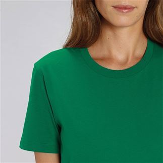Set-in sleeve. 1x1 rib at neck collar. Inside back neck tape in self-fabric. Sleeve hem and bottom hem with wide double-needle topstitch. Unisex, medium fit, short sleeve, round-neck. 100% organic ringspun combed cotton. Single Jersey. Fabric washed.