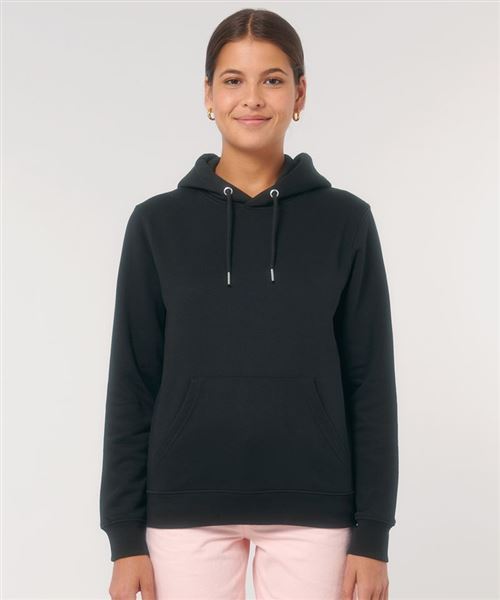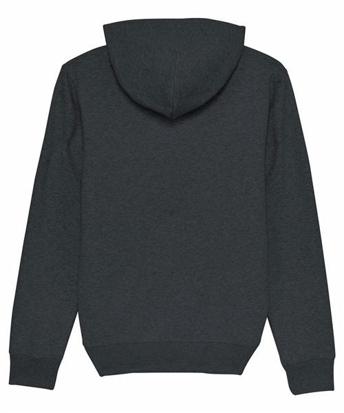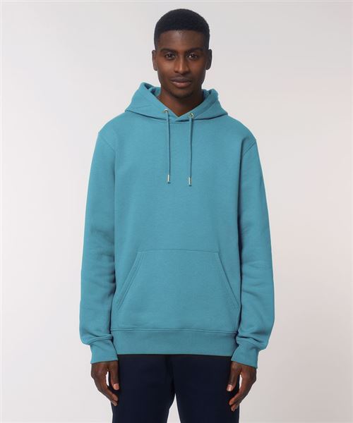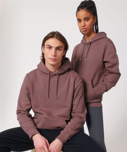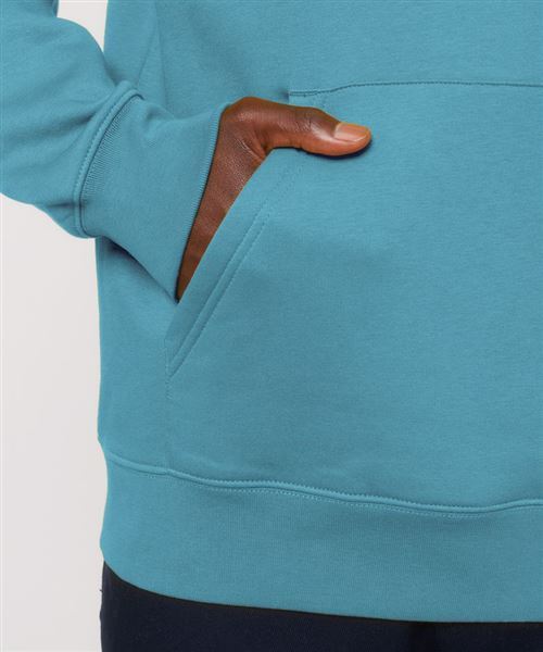 Set-in sleeve. Double-layered hood in self-fabric. Round drawcords in matching body colour with metal tipping. Metal eyelets. Inside herringbone back neck tape. Self-fabric half-moon at back neck. single-needle topstitch at neckline and along hood opening. 1x1 rib at sleeve hem and bottom hem . Armhole, sleeve hem and bottom hem with twin-needle topstitch. Kangaroo pocket at front. Unisex, medium fit, long sleeve, round-neck with hood. 85% organic ringspun combed cotton, 15% recycled polyester. Brushed sweatshirt. Fabric washed, light sueded.