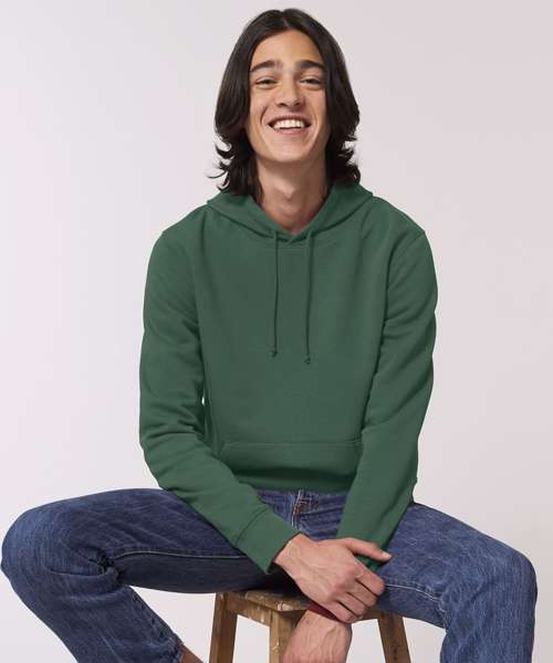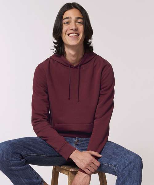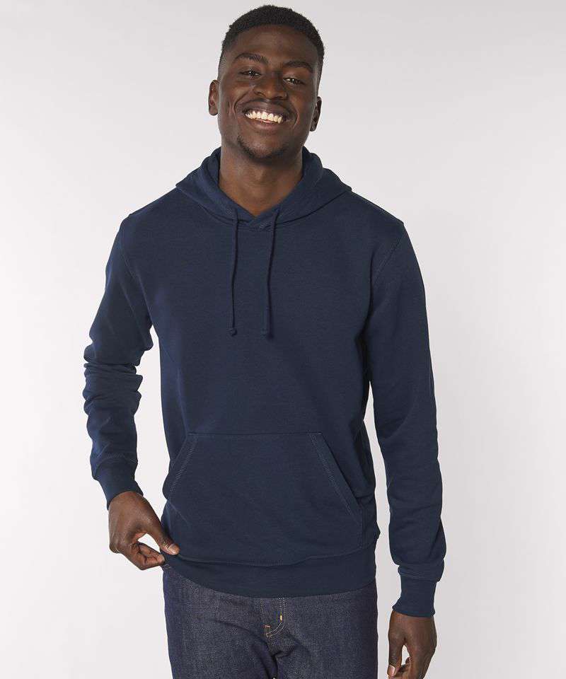 The unisex hoodie sweatshirt from the Essentials Collection. This 280gsm brushed sweatshirt has set-in sleeves, kangaroo pocket, single Jersey hood lining and a clean knotted finish drawstring.