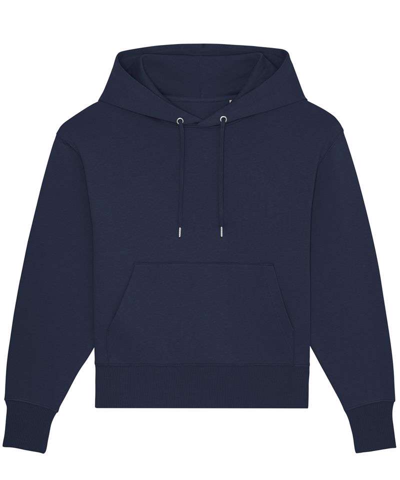 Set-in sleeve. Double layered hood in self-fabric. Flat drawcords in matching body colour with metal tipping and metal eyelets. Inside herringbone back neck tape. Self-fabric half-moon at back neck. Single needle topstitch at neckline. 2x2 rib at sleeve hem and bottom hem. Armhole, sleeve hem and bottom hem with twin-needle topstitch. Kangaroo pocket at front. Relaxed fit with 350gsm brushed fabric.