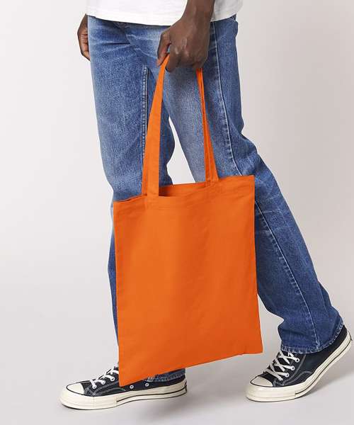 Top edge double-folded for strength and clean finish. Long handles with reinforced cross stitch.