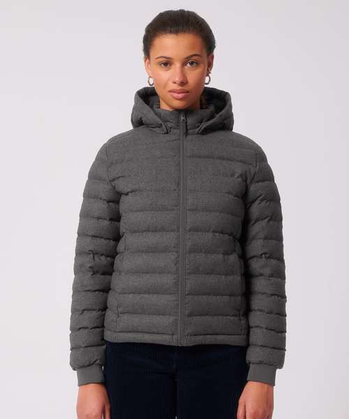This women’s fitted wool-like padded jacket, with detachable hood, is a great choice for outdoor use in any weather.