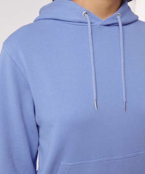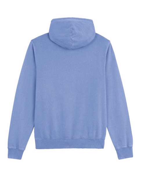 Unisex medium fit garment dyed hoodie sweatshirt. Set-in sleeve. Double-layered hood in self- fabric. Round drawcords in matching body colour with closed metal tipping. Metal eyelets. Inside herringbone back neck tape. Self-fabric half-moon at back neck. 1x1 rib at sleeve hem and bottom hem. Armhole, sleeve hem and bottom hem with twin-needle topstitch. Kangaroo pocket at front. Slight shading on seams to give washed look. Garment-dyed product: each garment may vary in appearance, colour may bleed, follow our care label. Read carefully print recommendations.