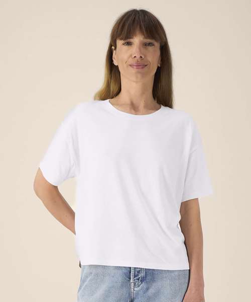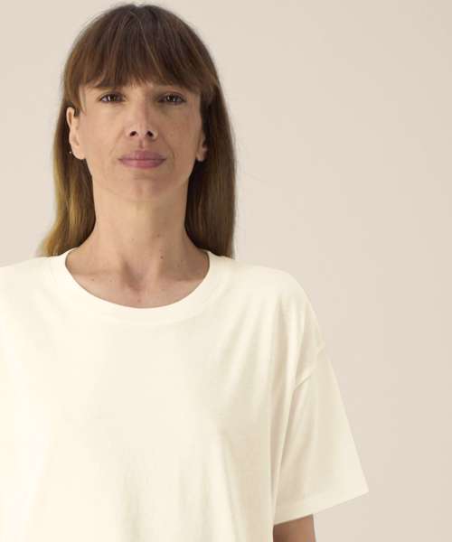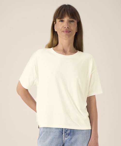 The Stella Etta is a refined cotton-TENCEL™ modal t-shirt for women. It offers a soft hand feel, natural fluidity and a relaxed fit for extra comfort. The set-in sleeves and longer curved back hem enhance its feminine shape, while the 1x1 rib collar and twin-needle topstitching ensure lasting quality. Lightweight and breathable, this blank cotton tee feels effortlessly elegant and refined – ideal for warm days or layered looks. Designed with a premium surface for printing or embroidery, it’s a trendy, versatile t-shirt for brands seeking a sustainable base that combines comfort and sophistication.