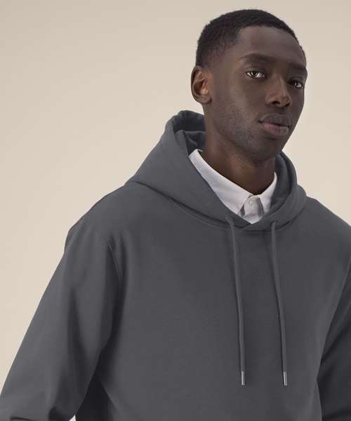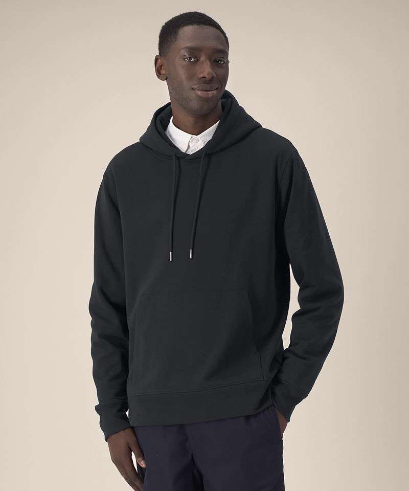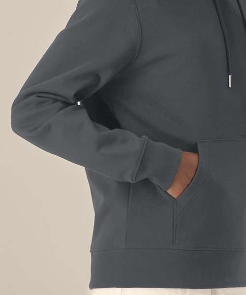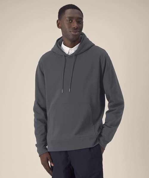 Unisex recycled cotton hoodie. Set-in sleeves. Double-layered hood in self-fabric. Round drawcords in a matching colour with closed-end metal tipping. Embroidered eyelets. Twin-needle topstitching centred on seams at sleeve cuffs and hem. 1x1 rib at sleeve cuffs and hem. Kangaroo pocket. Inside herringbone back neck tape. Self-fabric half-moon at the back neck. Contains 50% GRS-certified recycled cotton and 50% OCS-certified organic cotton, certified by Control Union CB-CUC-1393082.