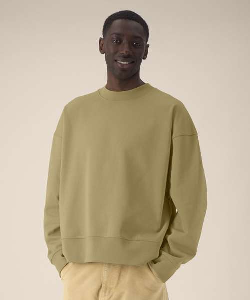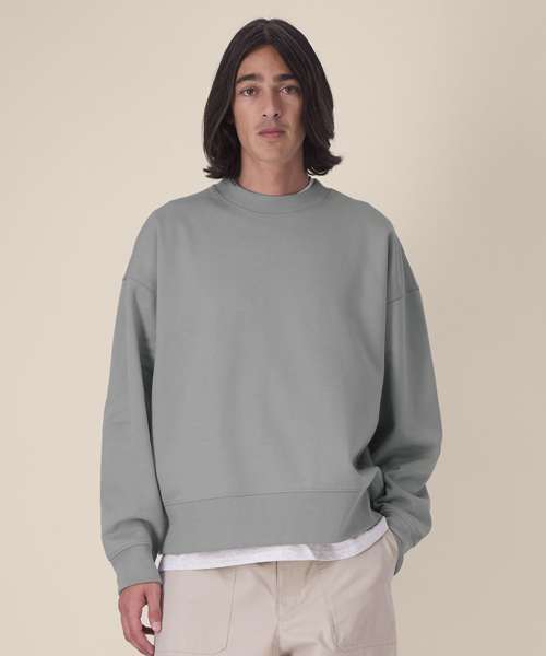 The Ryler is a unisex crew neck sweatshirt made from a soft recycled cotton blend. With its trendy boxy fit, it offers a balance of comfort, structure and modern appeal. Set-in sleeves and structured 1x1 ribs at the cuffs and hem, plus durable twin-needle topstitching throughout, ensure lasting quality. Inside, a herringbone back neck tape and self-fabric half moon provide a clean, premium finish. Designed for lifestyle branding, music merch and trend-led collections, this recycled cotton sweatshirt offers excellent decoration results – a go-to blank for standout, sustainable prints.