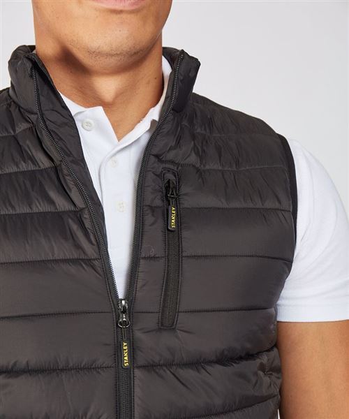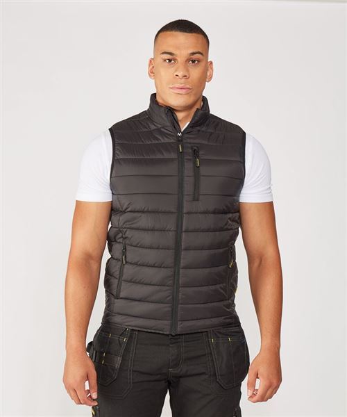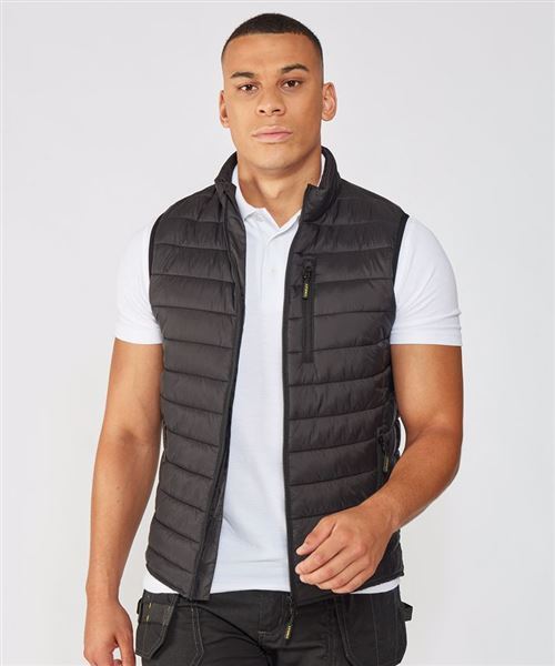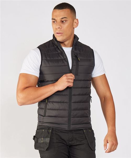 Insulated zip-through gilet with chest pocket and narrow baffles. Funnel neck. Water-resistant. Zipped pockets. UKAS certified. ISO certified.