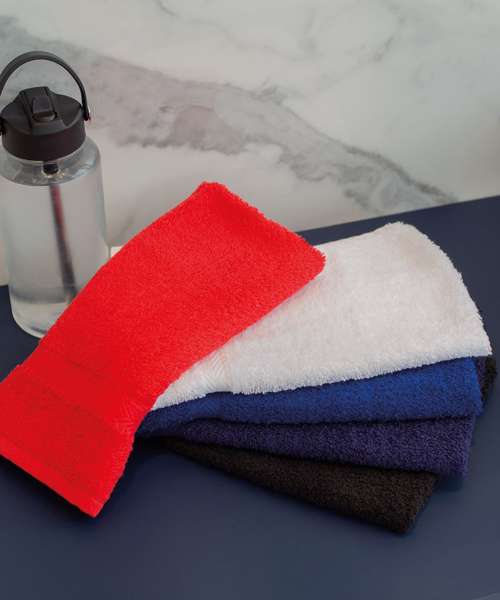 Luxury gym towel with soft, deep pile and excellent absorbency. Featuring a herringbone border with a convenient hanging loop. Available in popular colours.