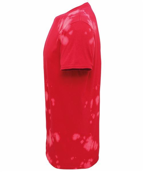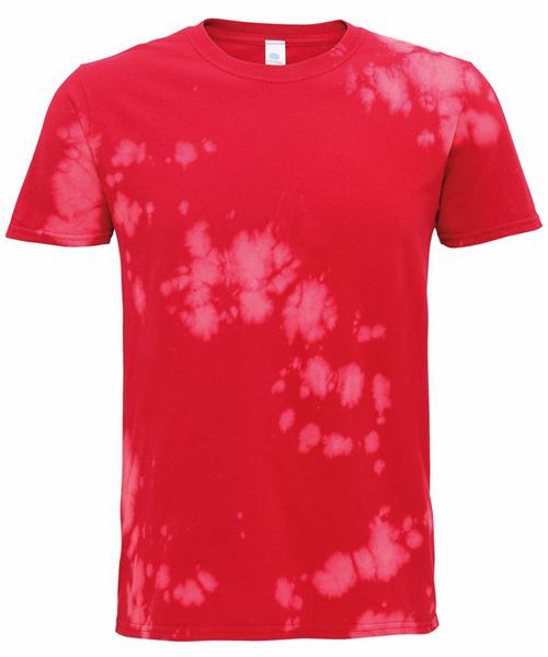 Short sleeved T made from ringspun cotton. 3 bold colours with bleach out detail.