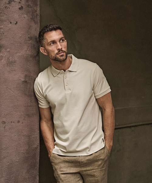 Flat knit collar with elastane. Mini piqué and tailored fit. Double pre-shrunk. Herringbone neck tape. Long-fibre cotton. Enzyme-washed. Silicone treatment. Clean finished placket. Certified organic cotton.