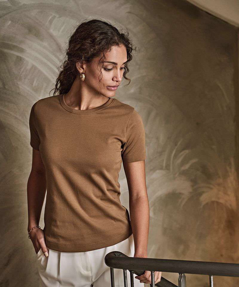 Give your casual looks an elegant spin in the uniquely designed Women’s interlock tee, with a shaped fit, short sleeves and a slim neck rib – perfectly stylish without compromising on comfort. It’s crafted in fine 40 singles yarn, offering a smooth, firm surface.