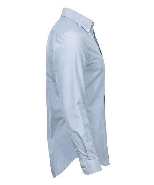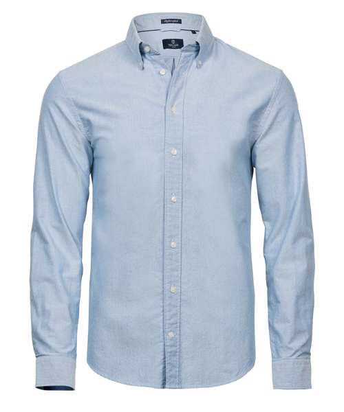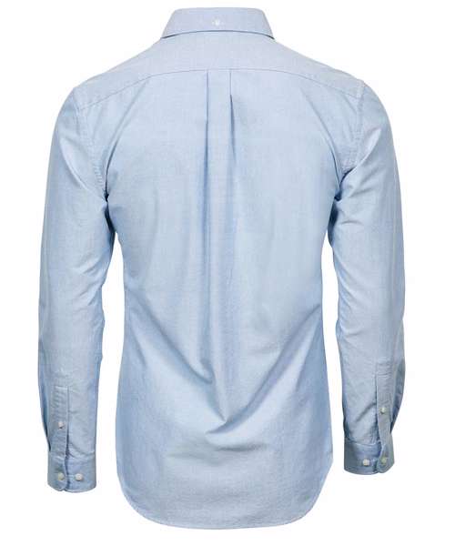 Shaped fit. Button-down collar. Back yoke with box pleat. Inside neck loop. Curved hem. Stretch fabric.