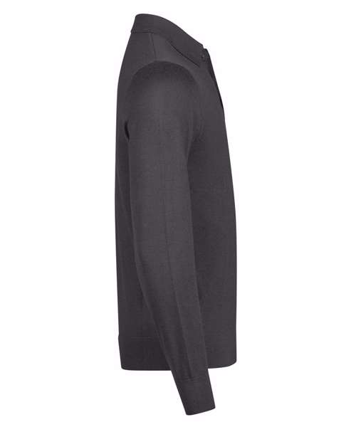 Tailored fit. Flat knit collar. Fully fashioned. Knitted rib at hem and cuffs. 30˚C washing on wool programme. Quality Italian merino/polyacrylic yarn.