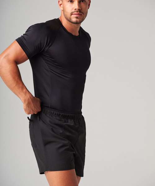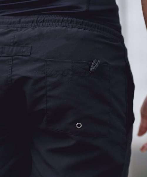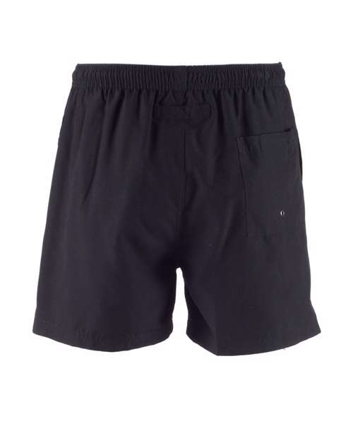Microfibre with peached finish. Elasticated waist with inner drawcord. 2 side pockets, 1 back pockets with inner keycord. Inner mesh polyester brief.