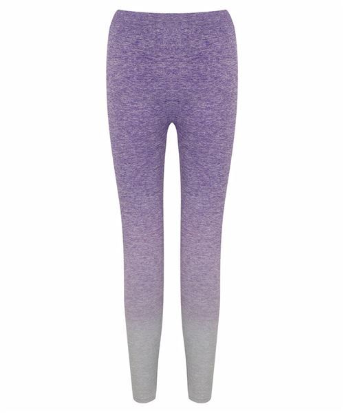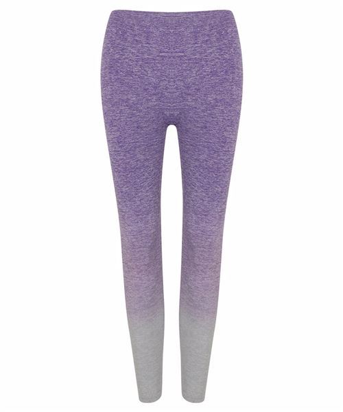 Fitted, high-stretch leggings with grown-on waistband. Seamless knit for comfort. Melange fabric with fade out/ombre colouring. Blind stitch at hems. Tombo tear-out label.