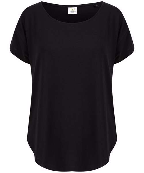 This oversized, super comfy scoop neck T offers style and versatility. The super-soft, lush fabric provides supreme comfort and features a scoop neck design with dropped shoulder seams and a dropped tail hem on the back. Tear-out label for easy rebranding.