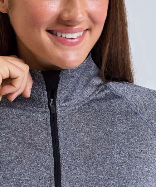 The women's TriDri® performance 1/4 zip is designed with soft, lightweight fabric that is perfect during outdoor workouts for bulk-free warmth.