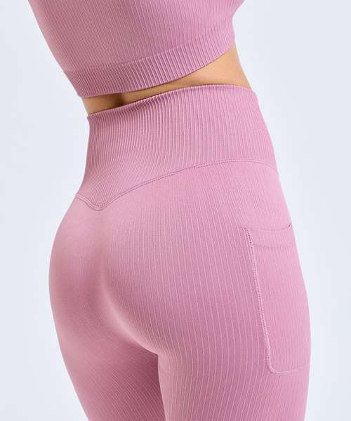 Seamless. High waistband with ‘V’ detailing to back. Stretchy. Ribbed detailing. Pockets to each upper thigh. We recommend using block out vinyl and inks.Product contains no branded neck or waist label. Removable Kimble or looped garment tags. Inner seam label holds important product information on one label with a second label containing brand information which can be cut-away.