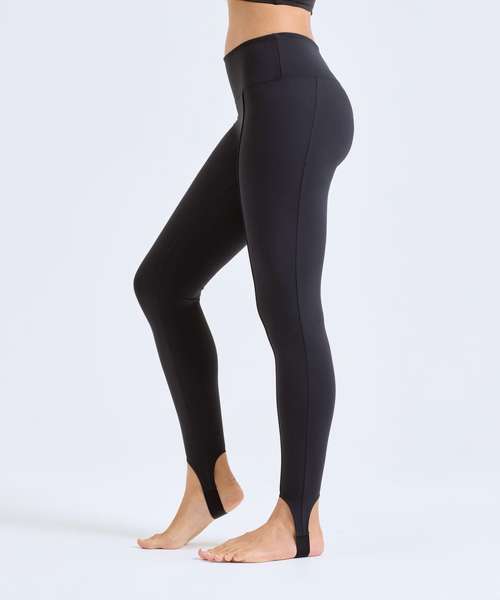 Full-length leggings. Soft-stretch fabric. Self-fabric waistband. Seam detail through centre. Elasticated stirrup design to feet. The product contains no branded neck or waist label. Removable kimble or looped garment tags. The inner seam label holds important product information on one label with a second label containing brand information which can be cut-away. We recommend using block out vinyl and inks.