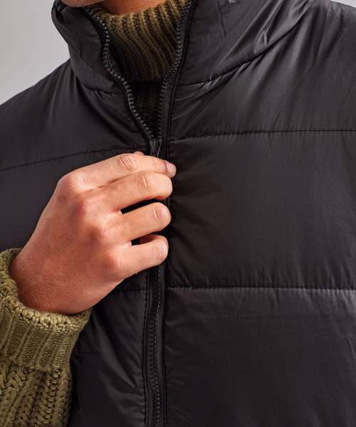 Tonal coil zip on centre front with signature zip puller. Horizontal stitched wide baffles. Fully-lined in tonal polyester. Welt pockets in internal zipped opening. Smartphone friendly - internal shockcord loop for headphone wire attachment. 270gsm lightweight polyester fill. Internal back neck hanger loop. Internal zipped opening for embroidery access. Internal chest patch pocket with hook and loop fastening. Product contains no branded neck label.* Removable Kimble or looped garment tags. Inner seam label holds important product information on one label with a second label containing brand information which can be cut-away.