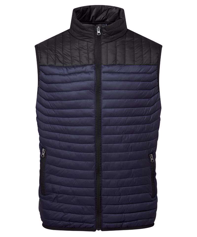 Tonal reverse coil zip on centre front with signature zip puller. Contour stitched sandwiched narrow baffles. 250gsm lightweight polyester fill. Internal binding on all seams. Stretch binding around armholes and hem for added protection. Contrast shoulder panelling. Reverse coil zips on pockets. Internal back neck hanger loop. Product contains no branded neck label.* Removable Kimble or looped garment tags. Inner seam label holds important product information on one label with a second label containing brand information which can be cut-away.