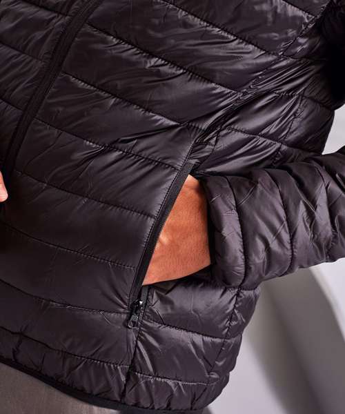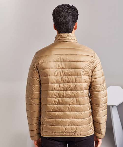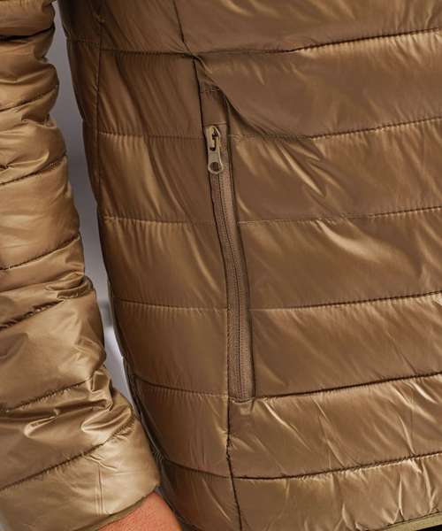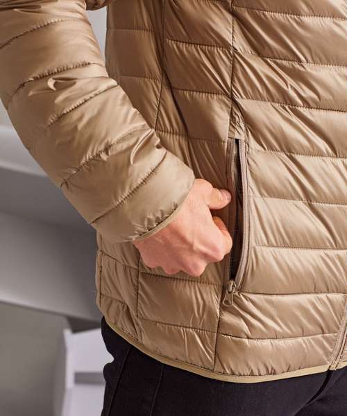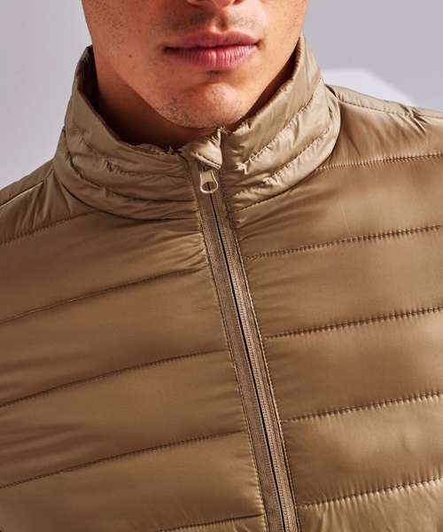 Tonal reverse coil zip on centre front with signature zip puller and internal storm flap with chin guard. Horizontal stitched sandwiched narrow baffles. Tonal reverse coil zip pockets with upper zip garages. Stretch binding on cuffs and hem for added protection. Side seam shaped panelling. Packable bag. Internal signature back neck hanger loop. 250gsm lightweight. polyester fill. Inside binding around seams. Product contains no branded neck label.* Removable Kimble or looped garment tags. Inner seam label holds important product information on one label with a second label containing brand information which can be cut-away.