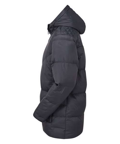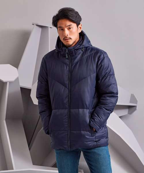 Warm, versatile, multi-baffled jacket. Diagonal ‘v’-stitched sandwiched baffles to chest. Diamond quilting to upper back. Centre front zip with recycled icon zip pull. Three-panelled hood with chin guard, removable via zip. Toggles on hood for a snug fit. Fleece-lined collar. Warm polyfill quilted lining. Two concealed zip front pockets. Inner phone pocket. Embroidery access. Product contains no branded neck label.* Removable Kimble or looped garment tags. Inner seam label holds important product information on one label with a second label containing brand information which can be cut-away.