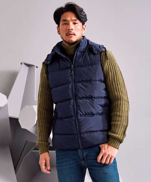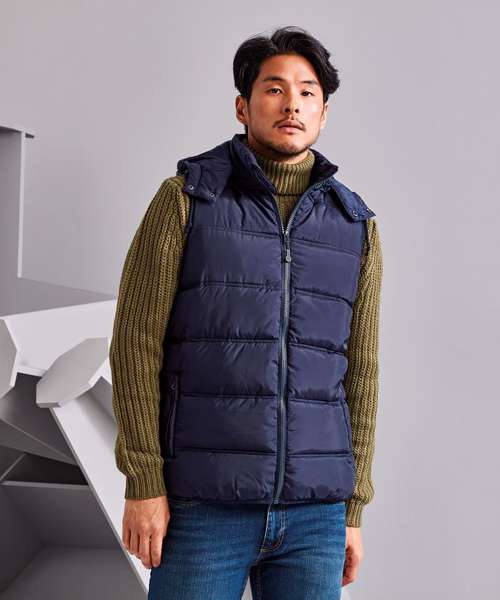 Zip on centre front with recycled icon zip pull. Quilted horizontal stitched wide baffles. Quilted three-panel hood with binding around edge, removable via zip. Toggles and popper fastenings on hood for a snug fit. Internal storm flap with chin guard. Stretch binding around armholes and hem for added protection against the elements. Internal zipped opening for embroidery access. Concealed zip side pockets. Internal phone pocket. Product contains no branded neck label.* Removable Kimble or looped garment tags. Inner seam label holds important product information on one label with a second label containing brand information which can be cut-away.