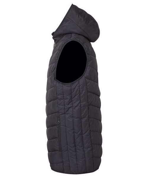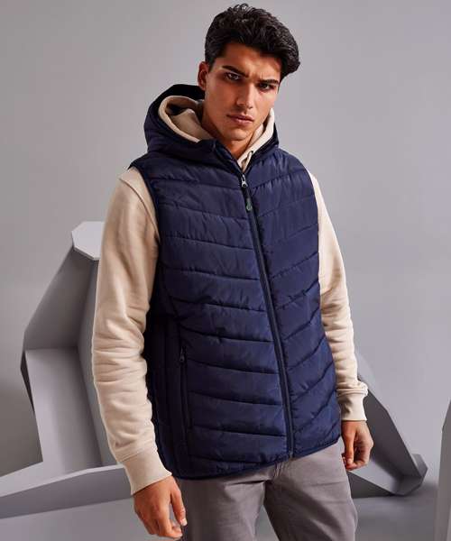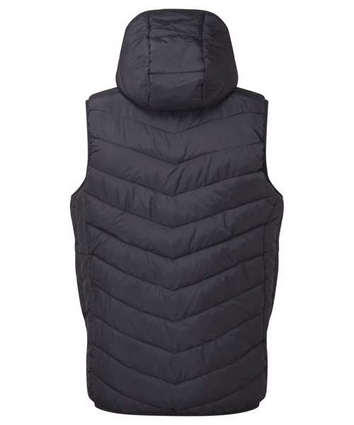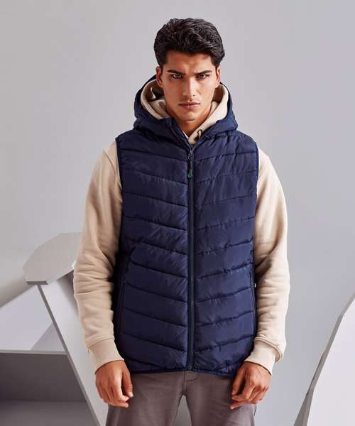 Reverse coil zip on centre front with recycled icon zip pull and internal storm flap and chin guard. Diagonal ‘v’-stitched sandwiched baffles on front and back body panels with horizontal stitched baffles at side seams. Lightweight polyester fill. Internal binding on all seams. Reverse coil zip pockets. Stretch binding around armholes and hem for added protection. Attached square baffled hood. Inner phone pocket. Embroidery access. Product contains no branded neck label.* Removable Kimble or looped garment tags. Inner seam label holds important product information on one label with a second label containing brand information which can be cut-away.