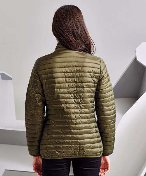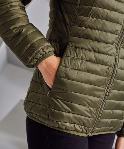 Tonal coil zip on centre front with signature zip puller and internal storm flap and chin guard. Horizontal sandwiched narrow baffles on front and back body. 228gsm lightweight polyester fill. Internal binding on all seams. Internal back neck hanger loop. Concealed zip pockets with teardrop pullers. Stretch binding around cuffs and hem for added protection. Packable bag. Product contains no branded neck label.* Removable Kimble or looped garment tags. Inner seam label holds important product information on one label with a second label containing brand information which can be cut-away.