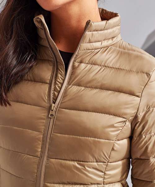 Tonal reverse coil zip on centre front with signature zip puller and internal storm flap with chin guard. Horizontal stitched sandwiched narrow baffles. Tonal reverse coil zip pockets with upper zip garages. Stretch binding on cuffs and hem for added protection. Side seam shaped panelling. Packable bag. Internal signature back neck hanger loop. 250gsm lightweight. polyester fill. Inside binding around seams. Product contains no branded neck label.* Removable Kimble or looped garment tags. Inner seam label holds important product information on one label with a second label containing brand information which can be cut-away.