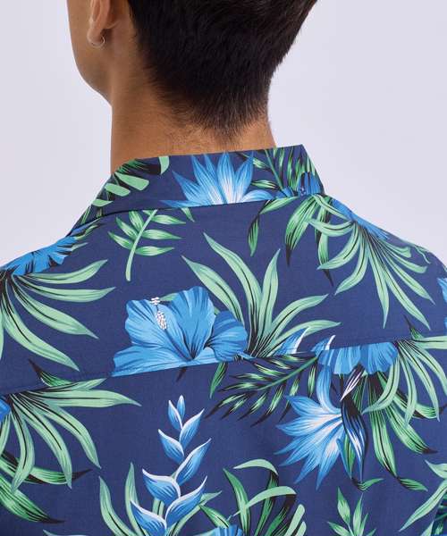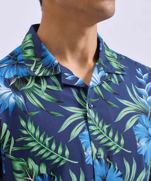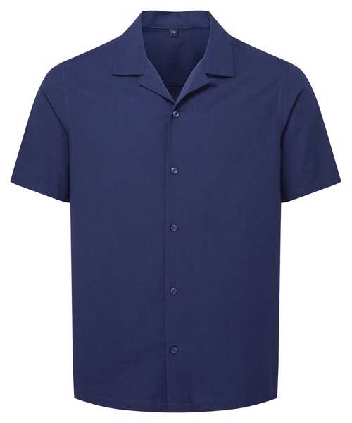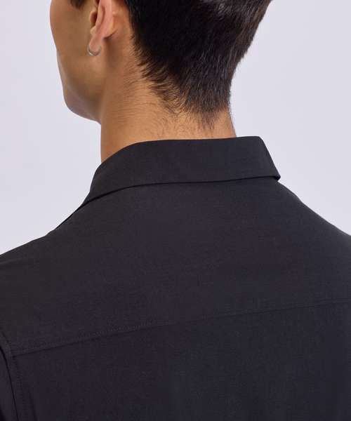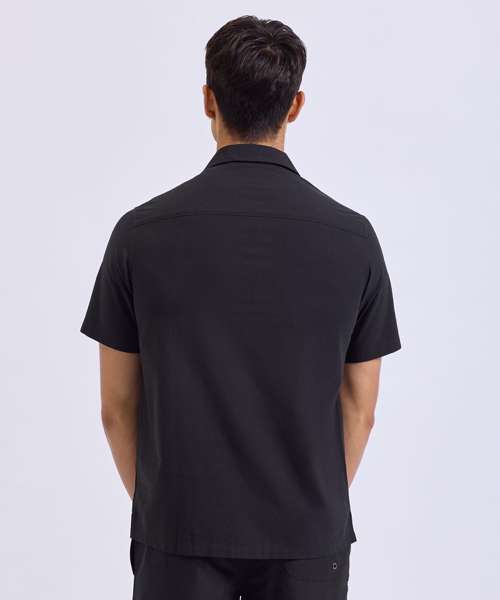 Relaxed fit shirt. Cuban collar. Button front closure. Short sleeves.