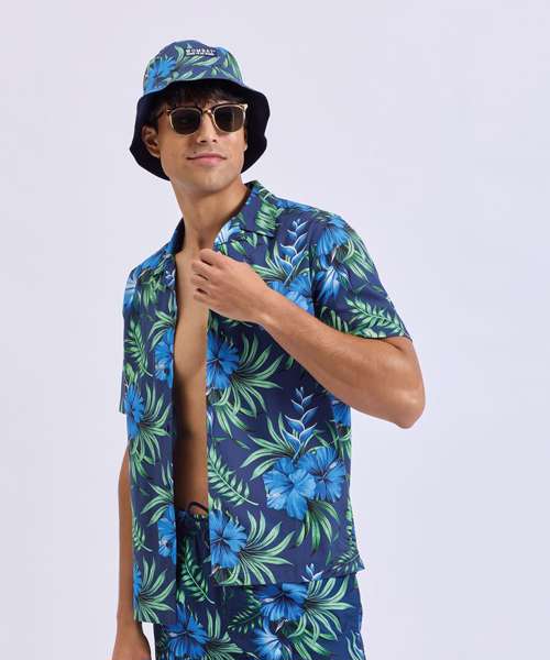 Looking to add some fun to your summer wardrobe? Look no further than Wombat's short-sleeve shirt. Perfect for vacations or just lounging in the sun, this shirt features a relaxed fit, lightweight material, a trendy Cuban collar, and easy button fastening. Wear it on its own for a breezy look, or layer it up with a classic tank top and matching Wombat swim shorts for a vibrant and coordinated outfit.