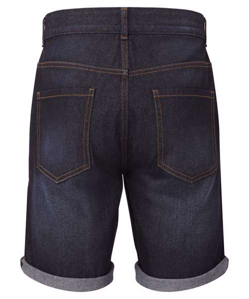 Two front pockets with coin pocket. Brass button and cap detailing. Two back patch pockets. Zip fly and button fastening. Washed denim effect. Contrast stitching. Belt loops. Shorts can be worn rolled up.