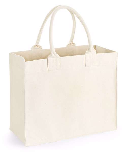 100% Cotton canvas, (12oz/yd²). Structured base and side panels. Premium heavyweight fabric. Internal slip pocket. Cotton carry handles. Can be carried by hand or over the shoulder. TearAway label for easy rebranding.