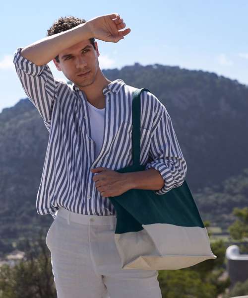 The Earthaware® organic contrast shopper merges functionality with eco-friendly design. Crafted from sturdy organic cotton canvas, this two-tone bag features a unique crinkle effect, providing texture and character. Timeless colours offer year-round versatility, making it easy to pair with various styles.