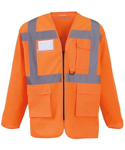 Conforms to EN ISO20471:2013 Class 3 and Orange is also RIS-3279-TOM Railway use certified; 5cm wide reflective tapes around the body and arms; One over each shoulder; Mobile phone/walkie-talkie pocket to front left chest; Full length front zipper fastening; Two bottom pockets with flaps and accessible from both the top and the side; Pen pockets and key holder; ID pocket on right hand chest; Large area on reverse for decoration.