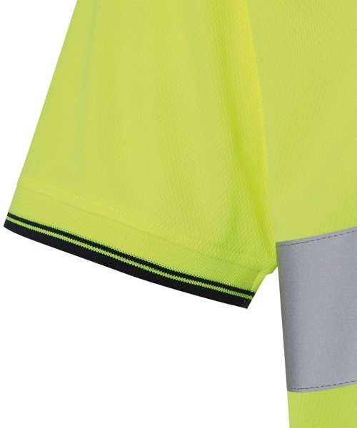 A modern Hi-Vis t-shirt by YOKO, created for professionals with casual comfort in the Aircool breathable and quick-dry soft and skin-friendly bird-eye fabric. Cut to a laid-back fit, this short-sleeved t-shirt features a contrast navy colour at the shoulder, collar, cuffs and hem.