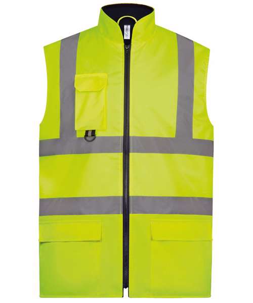 Conforms to ENISO20471:2013 Class 2 and Orange/Navy also conforms to RIS-3279-TOM. Made of 3 layers: 1) outer waterproof Oxford PU coated polyester, 2) mid layer non-woven and 3) inner fleece liner, in order to maximize shower proof and comfort and warmth. Navy hem provides nice contrast and helps keep clean. Chest mobile phone pocket with D-ring underneath. Two bottom pockets. Logo decoration access. Ideal for everyday wearing at work.