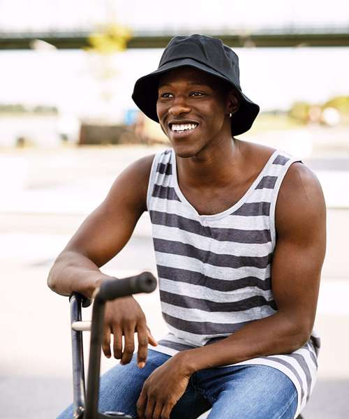 A 1990s hip-hop essential and a very casual item for hot days. Made of sturdy cotton twill, the Flexfit cotton twill bucket hat has an easy-wear factor thanks to the added elastane in the crown. The characteristic soft visor completes the relaxed look.