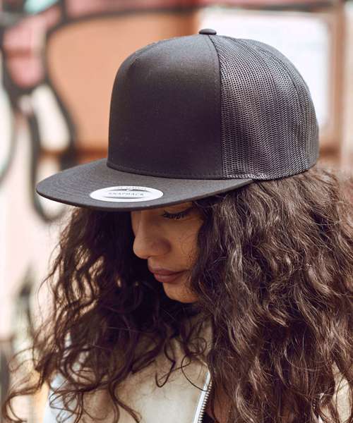 If you're after the trucker look but still want a sporty cap, the 5-Panel Retro Trucker Cap is just what you need. This cap combines the solid, reinforced front and the mesh back with a sporty 5-panel shape and high quality cotton twill fabric creating a great mix.